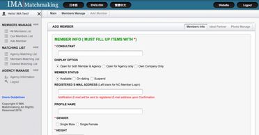 - 如上述所說的,代理可以瀏覽 IMA 會員資料庫內的會員檔案,並與自己已上載的會員進行配對。代理也可以於系統內安排會員間之約會 (代理参加後會獲派發用戶手冊)。
